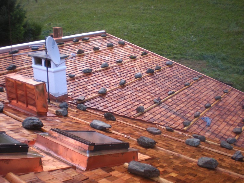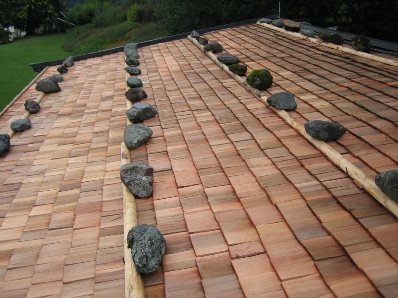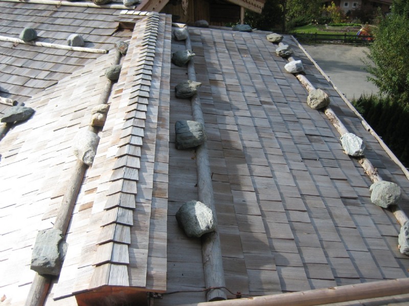 Wir haben uns vorwiegend auf traditionelle Legschindeldächer spezialisiert, wobei die gespaltenen Holzschindeln nur auf die Dachlattung verlegt werden und mit halbrunden Latten und Bachsteinen beschwert werden. Diese Schindeldachvariante wird rein durch die Latten und Steine befestigt, ohne jegliche andere Hilfsmittel wie Nägel oder Schrauben. Eine weitere Variante zum Legschindeldach ist das Scharschindeldach (genageltes Schindeldach), bei dem die Schindeln mit Schindelstiften befestigt werden.